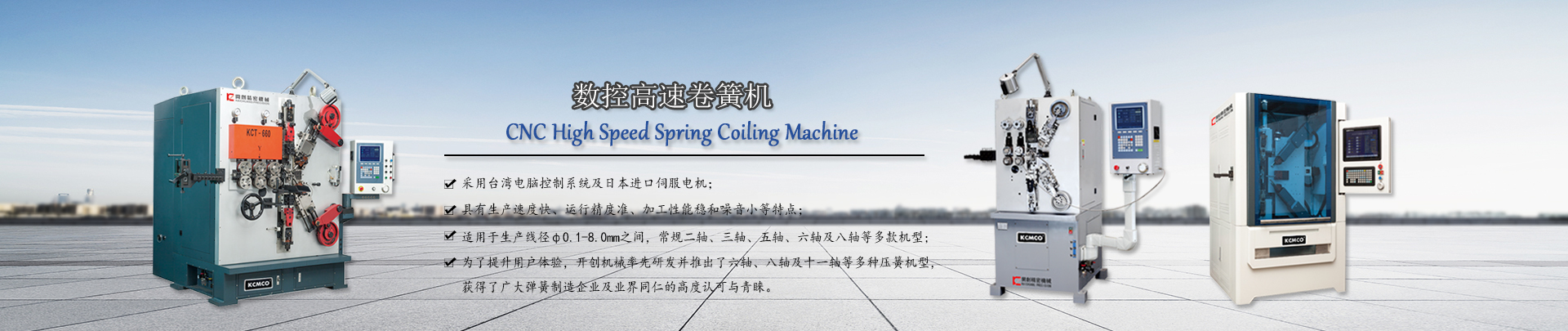 主營(yíng)產(chǎn)品: 彈簧機(jī)械   全自動(dòng)彈簧機(jī)   數(shù)控彈簧機(jī)   電腦彈簧機(jī)   數(shù)控高速卷簧機(jī)   數(shù)控萬(wàn)能彈簧機(jī)   無(wú)凸輪彈簧機(jī)   電腦壓簧機(jī)   八爪彈簧機(jī)   轉(zhuǎn)線彈簧機(jī)   彈簧機(jī)價(jià)格